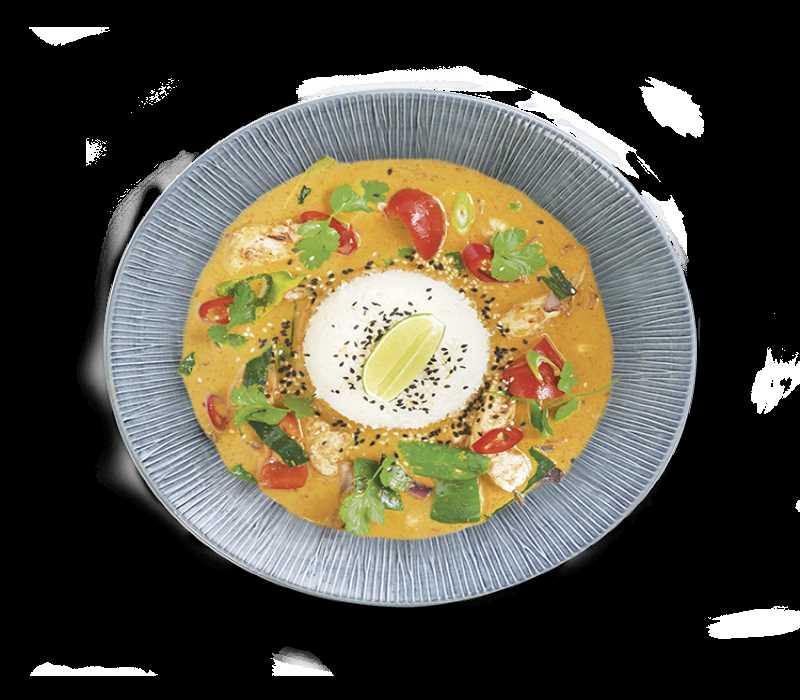 a mild, coconut and citrus curry, with prawns, mangetout, peppers, red and spring onions. served with a sprinkle of mixed sesame seeds, red chillies, coriander and fresh lime. Ask for no rice or replace for extra low carb veggies.